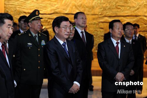 9月22日,中共中央政治局常委、中央紀(jì)委書記、中央代表團(tuán)團(tuán)賀國強(qiáng)等中央代表團(tuán)成員,在銀川參觀寧夏博物館。當(dāng)日上午,以賀國強(qiáng)為團(tuán)長的中央代表團(tuán)乘專機(jī)抵達(dá)銀川,參加寧夏回族自治區(qū)成立50周年慶;顒。中新社發(fā) 廖攀 攝