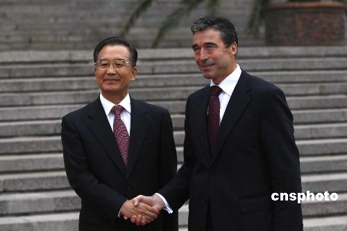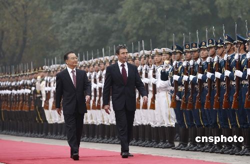 10月22日,中國國務(wù)院總理溫家寶在北京人民大會(huì)堂東門外廣場舉行儀式,歡迎丹麥?zhǔn)紫嗬鼓律V行律绨l(fā) 盛佳鵬 攝