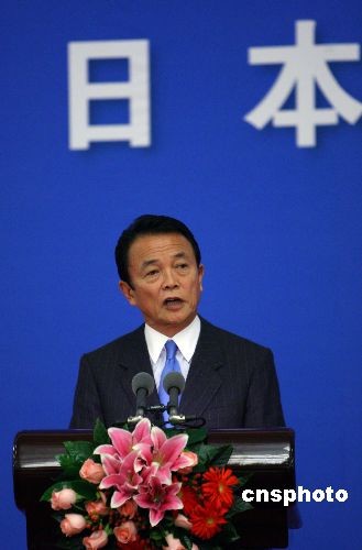 日本首相麻生太郎出席招待會并發(fā)表講話。