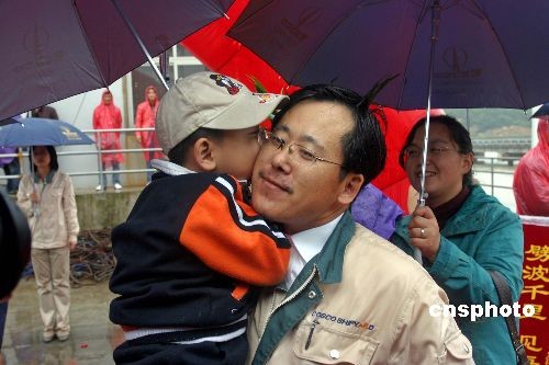 11月2日上午9時(shí)許,中國(guó)海事執(zhí)法船“海巡21”載著被三艘外籍漁業(yè)輔助船挾持的15名中國(guó)公民,安全靠泊在浙江舟山長(zhǎng)峙碼頭。在中國(guó)海事局、中國(guó)海上搜救中心的全力救助和韓、日兩國(guó)海事部門(mén)的協(xié)助下,10月20日被外籍漁業(yè)輔助船挾持的15名中國(guó)公民安全回到祖國(guó)懷抱。中新社發(fā) 黃正勝 攝