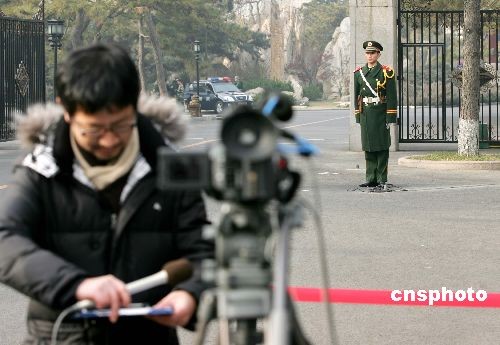 12月8日,新一輪朝核問題六方會談代表團(tuán)團(tuán)長會將于當(dāng)日下午在北京舉行。此次會談是在今年7月以后時隔5個月舉行,韓、朝、美、中、俄、日六國代表團(tuán)長將商討核驗證議定書的問題和棄核第二階段時間表等。圖為在釣魚臺國賓館門外等候會議開始的記者。中新社發(fā) 富田 攝