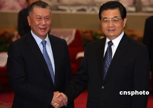 12月19日下午,國家主席胡錦濤在北京中南海會見前來述職的澳門特別行政區(qū)行政長官何厚鏵。中新社發(fā) 任晨鳴 攝