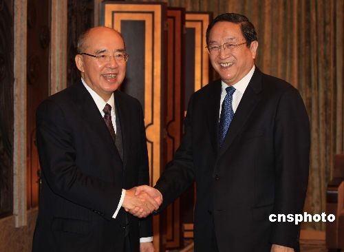 12月20日,中共上海市委書記俞正聲在上海西郊賓館會(huì)見中國國民黨主席吳伯雄一行。俞正聲在會(huì)見時(shí)表示,希望吳主席盡早幫助推動(dòng)、促進(jìn)上海世博會(huì)“臺(tái)灣館”的籌建。中新社發(fā) 潘索菲 攝