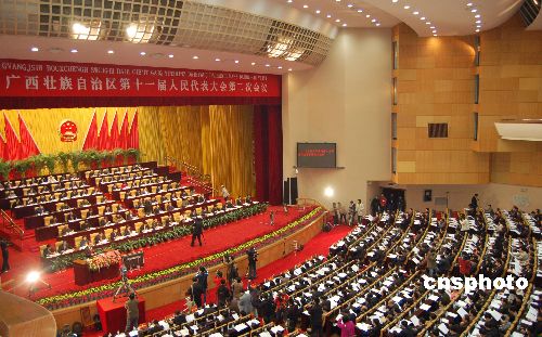 1月10日,為期五天的廣西壯族自治區(qū)十一屆人大二次會(huì)議在廣西首府南寧開幕。廣西壯族自治區(qū)主席馬飚在大會(huì)上做政府工作報(bào)告。中新社發(fā) 劉萬(wàn)強(qiáng) 攝