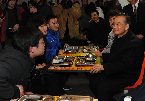 2月15日晚,正在天津調(diào)查研究的中共中央政治局常委、國務(wù)院總理溫家寶來到南開大學(xué)親切看望大學(xué)生。他勉勵同學(xué)們要心系國家,努力學(xué)習(xí),甘于奉獻,樹立正確的擇業(yè)觀念。 新華社記者 李學(xué)仁 攝