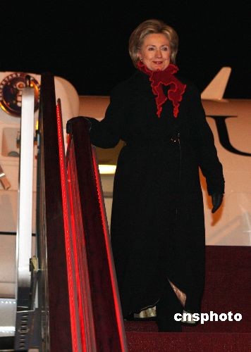 2月20日晚7時(shí)40分,美國新任國務(wù)卿希拉里·克林頓乘坐專機(jī)抵達(dá)北京首都國際機(jī)場,開始對中國進(jìn)行訪問。中國是希拉里·克林頓此次亞洲“傾聽之旅”的最后一站,也被外界認(rèn)為是她此次訪問的“壓軸戲”。中新社發(fā) 任晨鳴 攝