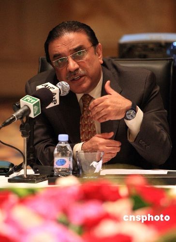 2月23日,正在訪華的巴基斯坦總統(tǒng)扎爾達(dá)里在上海與中國(guó)金融界人士座談。參加座談的包括中國(guó)工商銀行、交通銀行、中國(guó)銀行、中國(guó)建設(shè)銀行上海分支機(jī)構(gòu)相關(guān)負(fù)責(zé)人,以及上海銀行、上海證券交易所、上海浦東發(fā)展銀行等負(fù)責(zé)人。中新社發(fā) 潘索菲 攝