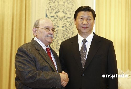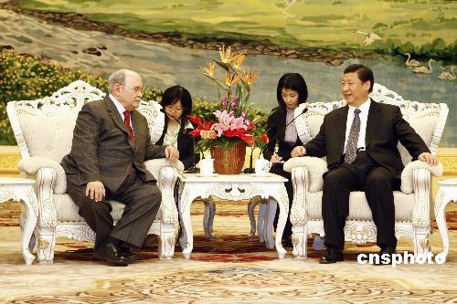 2月27日,中國(guó)國(guó)家副主席習(xí)近平在北京人民大會(huì)堂會(huì)見第63屆聯(lián)合國(guó)大會(huì)主席布羅克曼。中新社發(fā) 盛佳鵬 攝