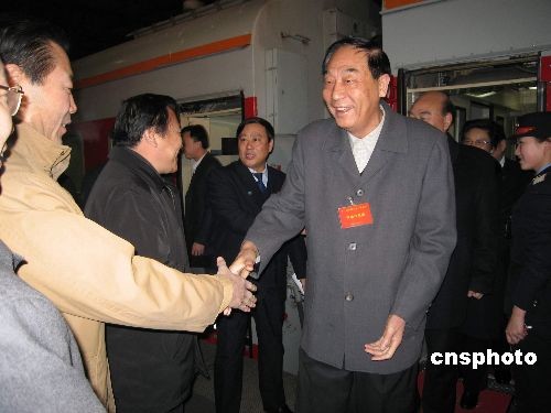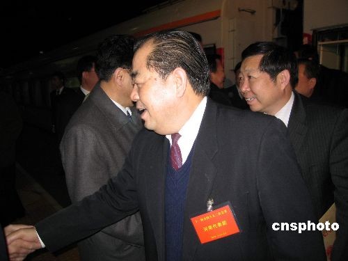3月2日6:02分,來自河南的全國人大代表抵達(dá)北京,成為首批抵京參加十一屆全國人大二次會(huì)議的京外代表。圖為在站臺(tái)受到熱烈歡迎的河南省全國人大代表。中新社發(fā) 石雨 攝