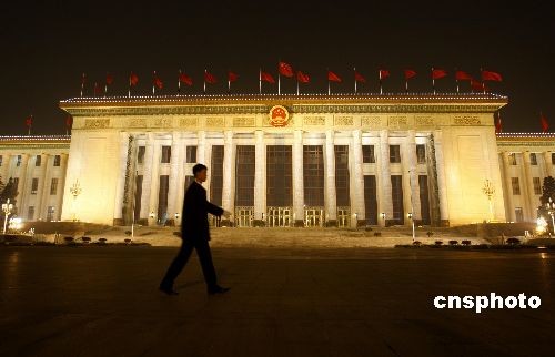 3月3日晚,北京天安門廣場紅旗飄揚,夜景璀璨迷人洋溢出一派喜慶祥和的氣氛,游客沉醉在美麗的夜色中。中新社發(fā) 鄭雄增 攝