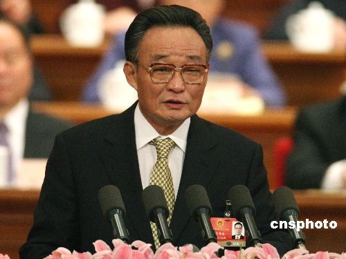 3月9日,十一屆全國(guó)人大二次會(huì)議第二次全體會(huì)議在北京人民大會(huì)堂舉行,全國(guó)人大常委會(huì)委員長(zhǎng)吳邦國(guó)作《全國(guó)人民代表大會(huì)常務(wù)委員會(huì)工作報(bào)告》。中新社發(fā) 任晨鳴 攝