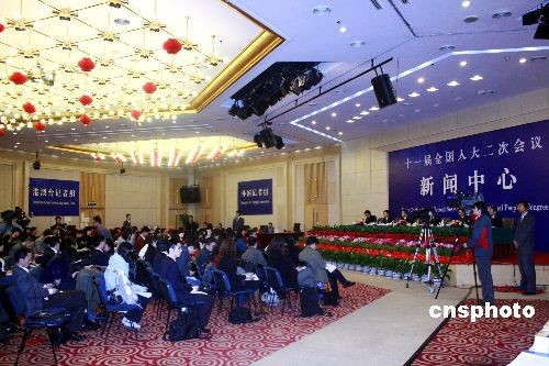 3月11日上午11時,十一屆全國人大二次會議新聞中心舉行“當(dāng)前環(huán)境保護(hù)形勢和任務(wù)”專題采訪,邀請環(huán)境保護(hù)部副部長張力軍(分管污染防治與減排、環(huán)境執(zhí)法等)、吳曉青(分管環(huán)評、監(jiān)測、環(huán)境科技等),環(huán)境保護(hù)部污染防治司司長翟青,環(huán)境保護(hù)部環(huán)境影響評價管理司司長祝興祥,環(huán)境保護(hù)部生態(tài)保護(hù)司司長莊國泰,在大會新聞中心接受中外記者采訪。中新社發(fā) 金立冬 攝