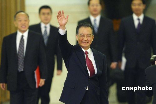3月13日上午,溫家寶總理舉行中外記者招待會,在開場白中引用自己在紐約講過的一句話:“信心要比黃金和貨幣還要重要”。中新社發(fā) 盛佳鵬 攝