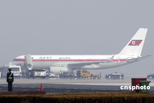 3月17日,朝鮮民主主義人民共和國內(nèi)閣總理金英日乘專機(jī)抵達(dá)北京首都國際機(jī)場(chǎng)。應(yīng)國務(wù)院總理溫家寶邀請(qǐng),金英日當(dāng)日上午抵達(dá)北京,開始對(duì)中國進(jìn)行為期5天的正式友好訪問。據(jù)悉,此訪是金英日就任總理后首次訪華。中新社發(fā) 盛佳鵬 攝