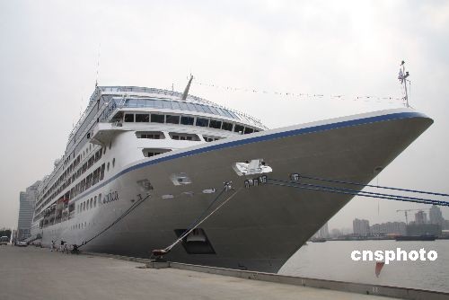 曾險遭索馬里海盜劫持的馬紹爾群島籍豪華郵輪“娜蒂卡”號,3月18日駛抵上海國際客運中心。船方表示,盡管曾遇海盜襲擊,船方表示,并不打算改變郵輪航線。據(jù)悉,該郵輪已是上海港的“常客”,此次從日本來滬,載有歐美旅客五百四十余名。中新社發(fā) 陳靜 攝