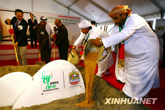 4月2日,中國2010年上海世博會阿拉伯聯(lián)合酋長國國家館正式破土動工。阿聯(lián)酋國家館占地6000平方米,其設(shè)計靈感來自阿聯(lián)酋雄偉的自然景觀——沙丘,如波浪般起伏的外觀富于創(chuàng)新和動感。上海世博會的這座“沙丘”展館將重點(diǎn)展示阿聯(lián)酋建國38年來快速成長的歷程和建設(shè)可持續(xù)發(fā)展城市的獨(dú)特經(jīng)驗(yàn)。在上海世博會會期結(jié)束之后,阿聯(lián)酋國家館將被拆卸,運(yùn)回國內(nèi)重建并長期使用 任瓏 攝