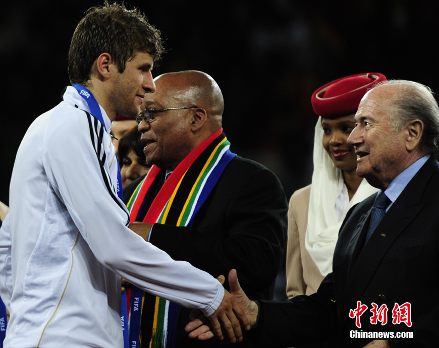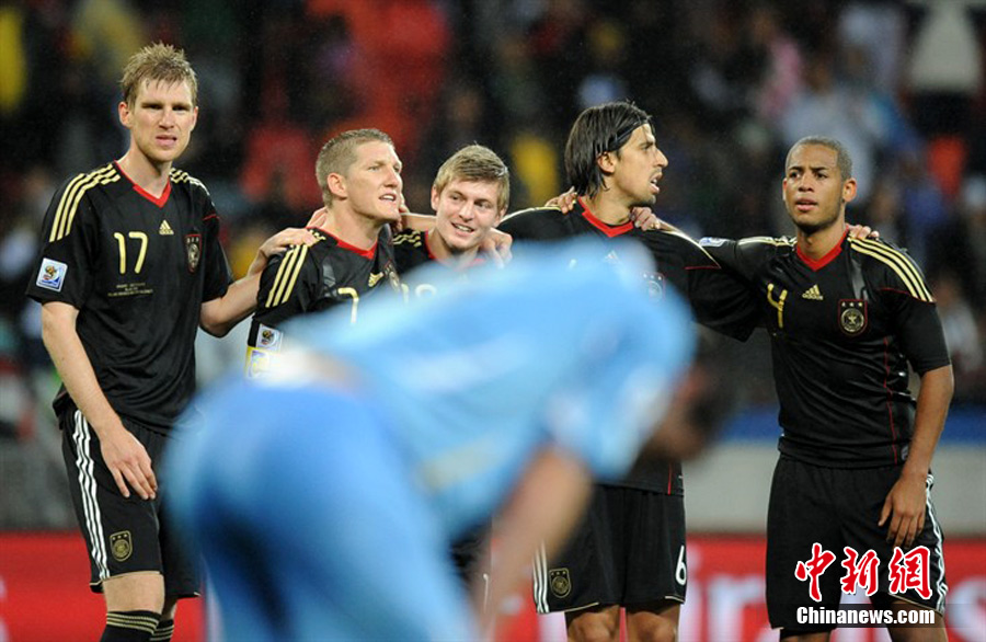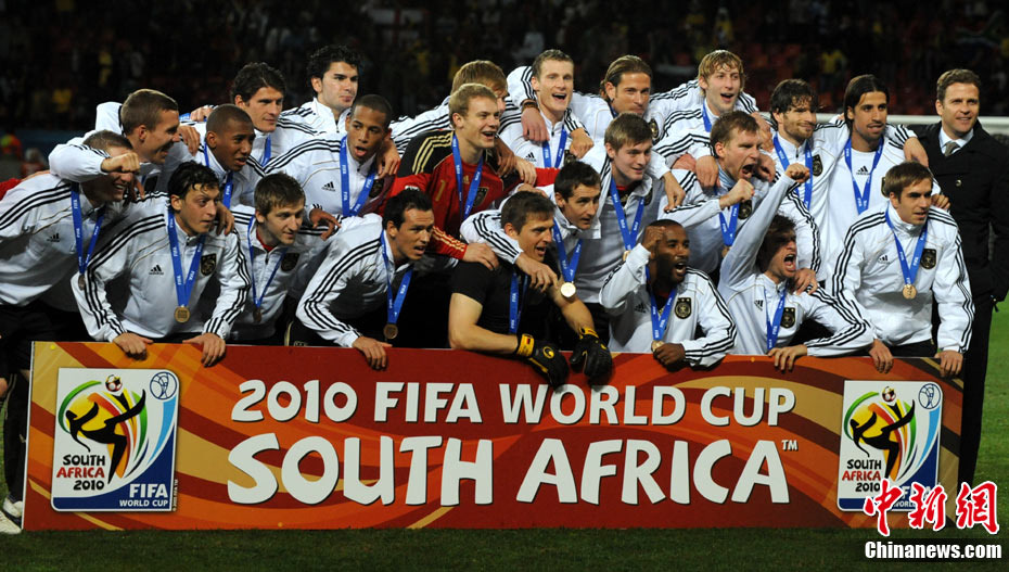 北京時間7月11日凌晨2:30,南非世界杯進行了三四名決賽的爭奪戰(zhàn),由烏拉圭在伊麗莎白港的納爾遜·曼德拉海灣球場迎戰(zhàn)德國隊。最終在一場進球大戰(zhàn)中,德國隊?wèi){借第82分鐘赫迪拉的進球一錘定音,以3-2險勝對手,獲得南非世界杯第三名。