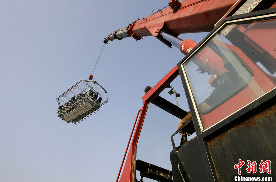 7月10日,黎巴嫩貝魯特22名賓客圍坐在被起重機(jī)吊起50米的餐桌旁享用“空中晚宴”。