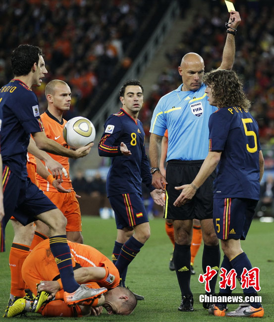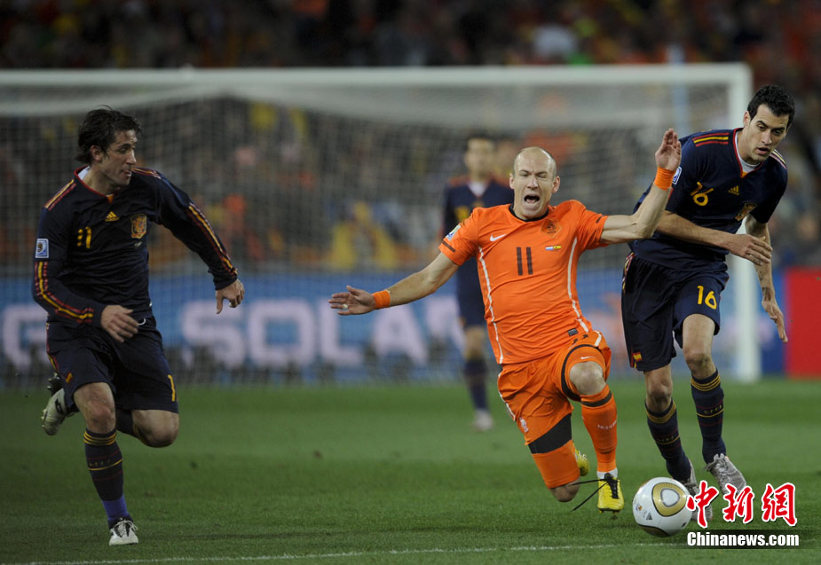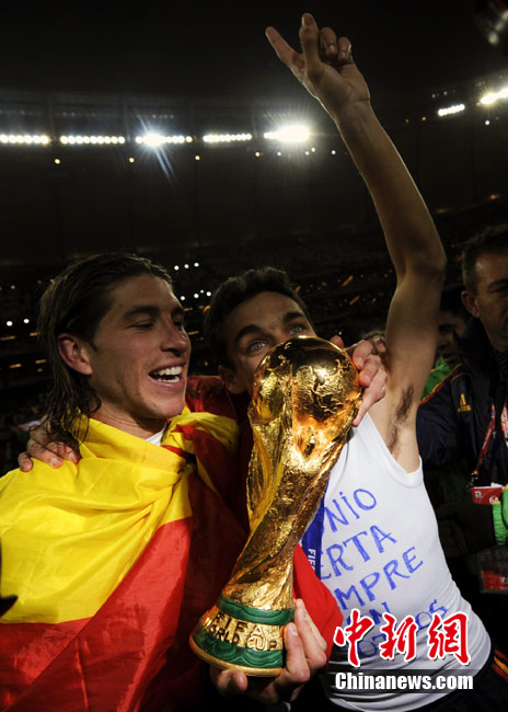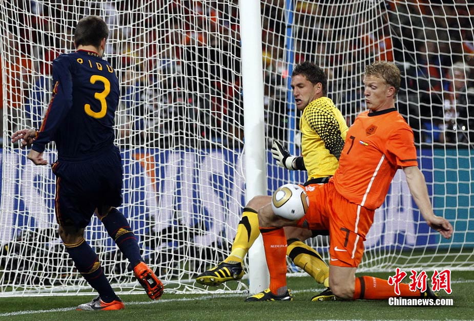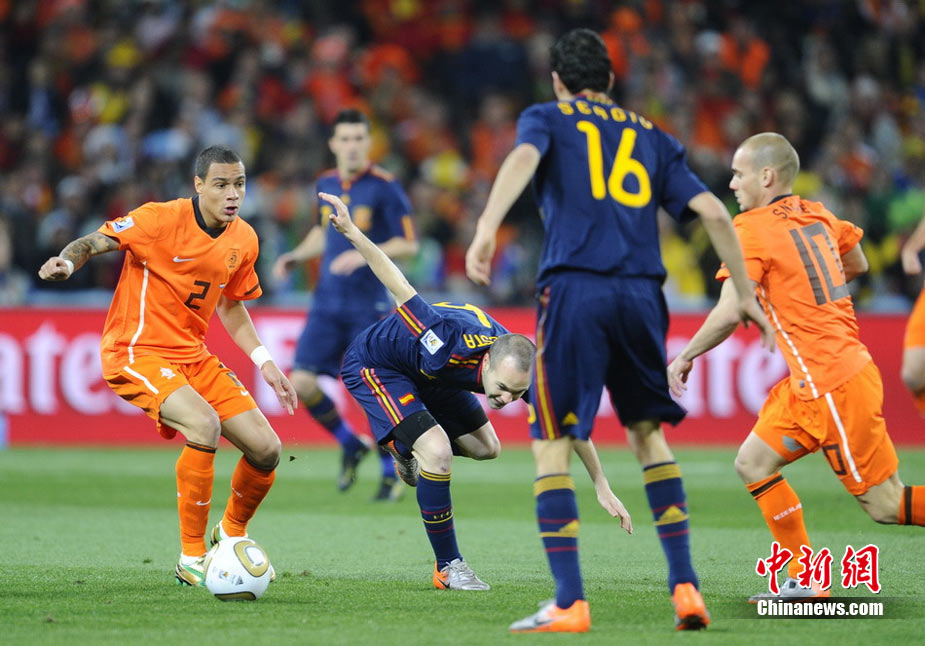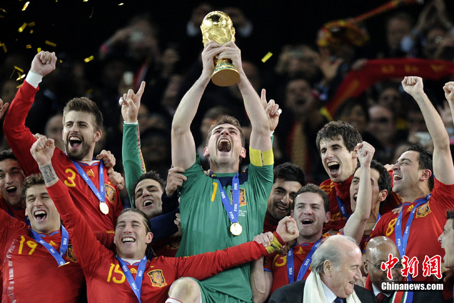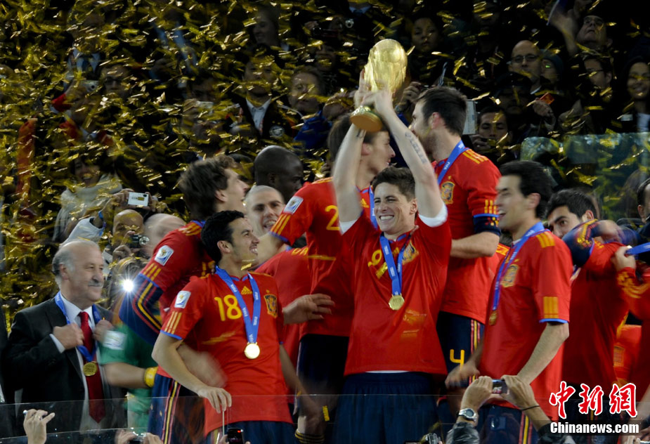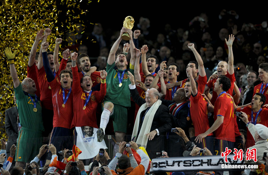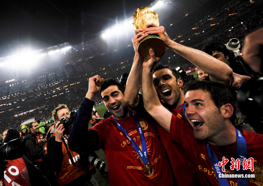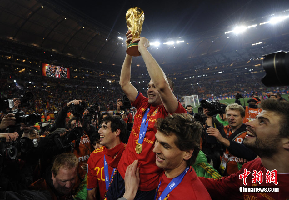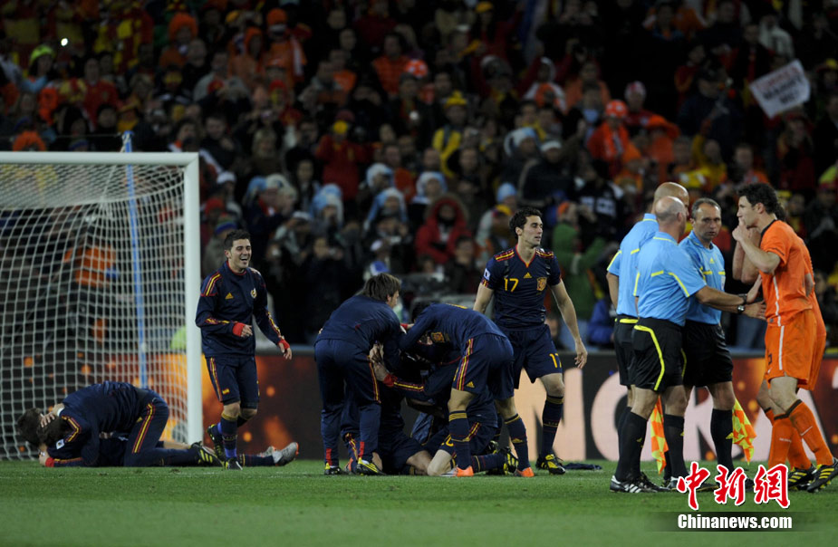 北京時(shí)間7月12日凌晨2:30,南非世界杯迎來(lái)了最終的決賽,在約翰內(nèi)斯堡的足球城球場(chǎng)由荷蘭隊(duì)對(duì)陣西班牙。最終雙方經(jīng)過(guò)120分鐘鏖戰(zhàn),伊涅斯塔在第116分鐘攻入全場(chǎng)唯一一粒進(jìn)球,絕殺十人應(yīng)戰(zhàn)的荷蘭隊(duì),史上首次奪得冠軍。