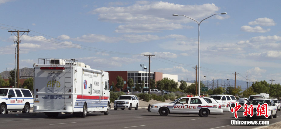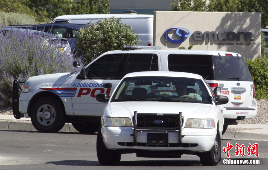 7月12日,美國新墨西哥州阿爾伯克基發(fā)生一起槍擊案,一名槍手在阿爾伯克基東南部的一家光導纖維廠辦公大樓會議室里開槍,打死2人,打傷4人,槍手隨后自殺身亡。警方認為,這可能是一起由家庭糾紛引起、發(fā)展到工作場所的槍擊事件。圖為警察在辦公大樓附近巡邏。