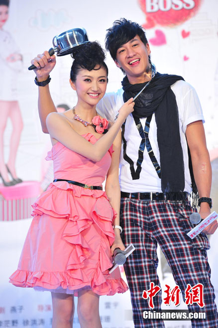 7月15日,時尚愛情喜劇電影《我的美女老板》在北京舉行了盛大發(fā)布會,主演景甜、何潤東、包小柏、吳辰君閃亮出席。景甜與何潤東在發(fā)布會上表現(xiàn)活潑,二人不僅別出心裁地騎摩托登場大秀甜蜜,還現(xiàn)場上演吻戲、搞笑十連拍,甚至帶上拳擊手套“拳腳相加”。中新社記者 李學(xué)仕 攝