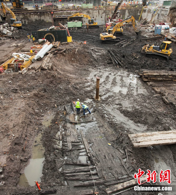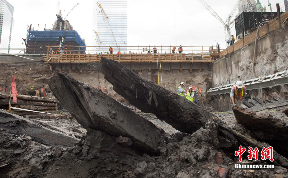 近日,美國(guó)紐約世貿(mào)中心遺址發(fā)現(xiàn)了一艘據(jù)信是18世紀(jì)的古船殘骸。報(bào)道稱,正在當(dāng)?shù)匦藿ㄐ率蕾Q(mào)大樓的建筑工人意外發(fā)現(xiàn)了這艘古船?脊艑W(xué)家表示,這艘長(zhǎng)約32英尺的古船可能是當(dāng)年用來運(yùn)料填充哈德遜河。