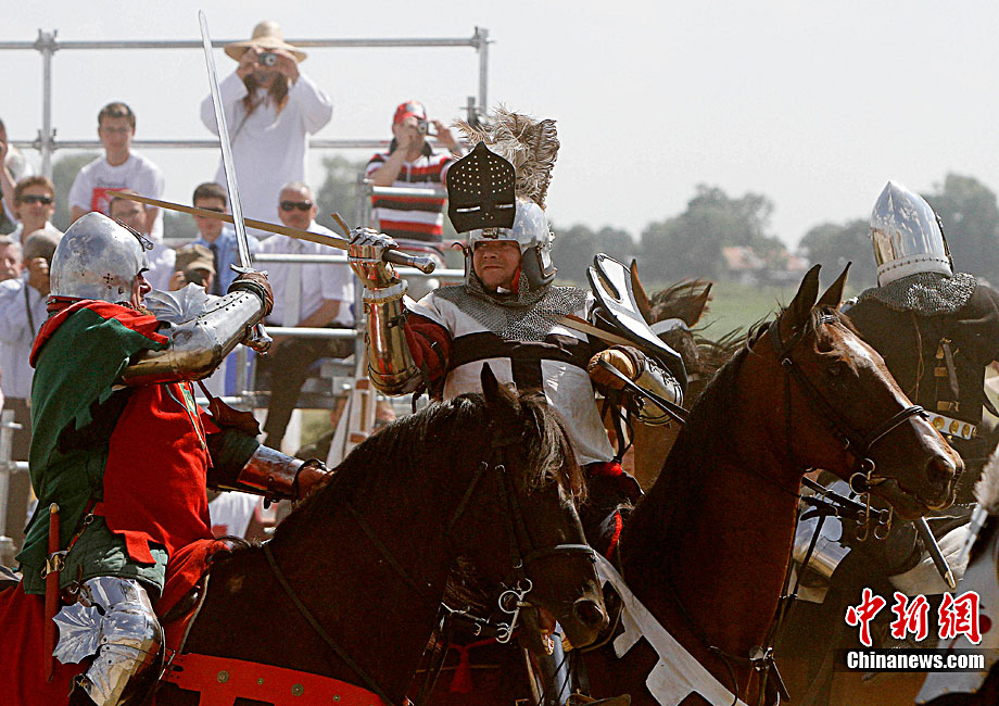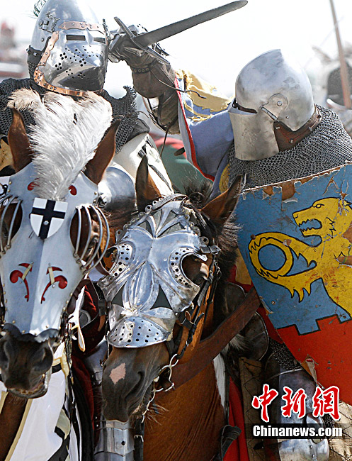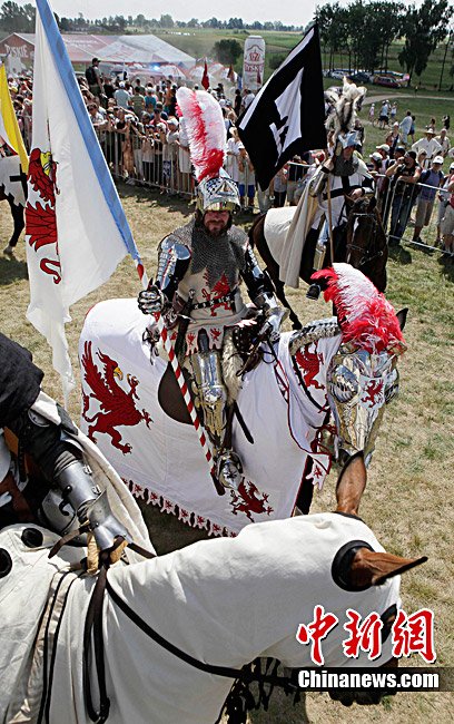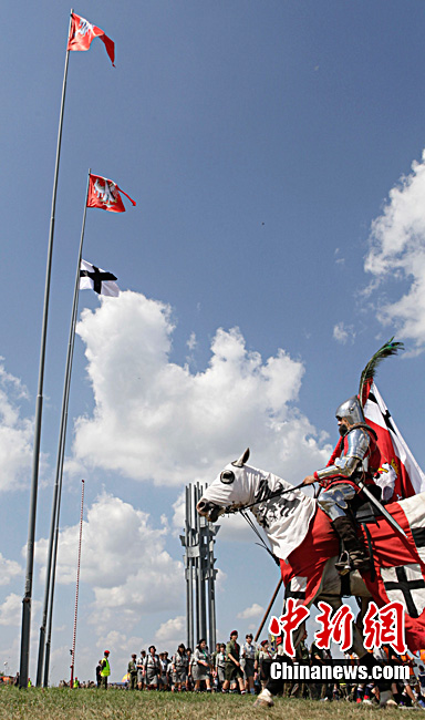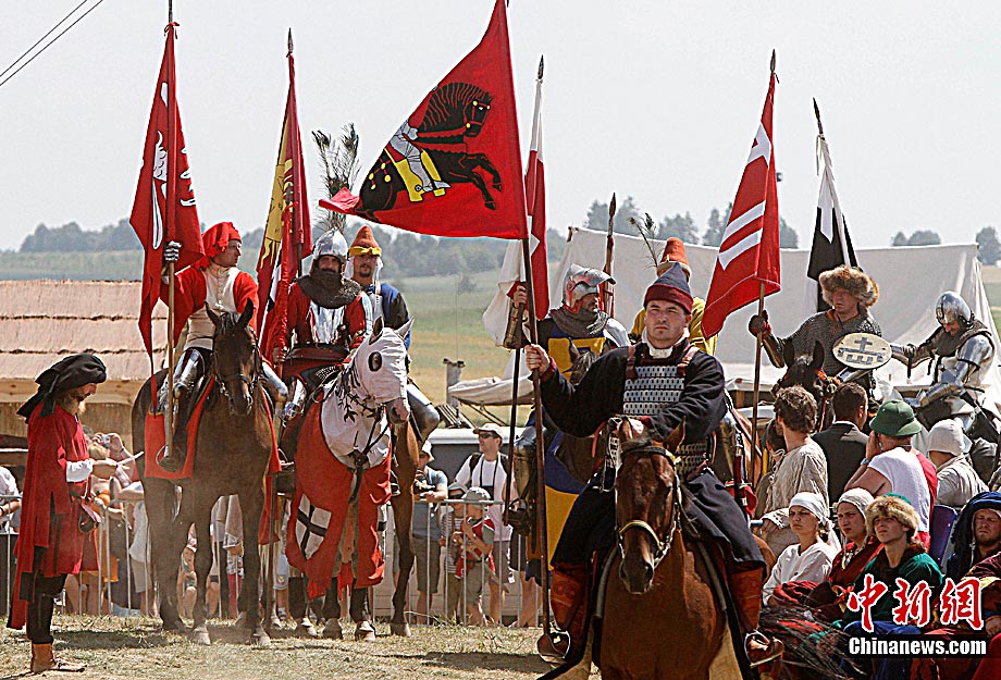 當?shù)貢r間7月15日,波蘭“格隆瓦爾德之戰(zhàn)”600周年紀念日,約1500名身著古代騎士服的“騎士”從歐洲各國來到波蘭北部重現(xiàn)了這場著名的戰(zhàn)役。格隆瓦爾德之戰(zhàn),發(fā)生于公元1410年,是波蘭國王兼立陶宛大公雅蓋沃領導抗擊條頓十字軍團的戰(zhàn)爭。在此戰(zhàn)中,擊斃當時十字軍包括大團長在內(nèi)幾乎全部的高級首腦,也是十字軍沒落的一個標志,此戰(zhàn)后新的大團長撤出馬爾堡,從此十字軍一蹶不振。