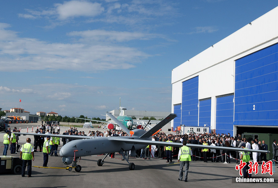 當?shù)貢r間7月16日,土耳其首架無人駕駛偵察機在首都安卡拉附近的空軍基地亮相。該偵察機是由土耳其航空航天工業(yè)公司研發(fā)的。