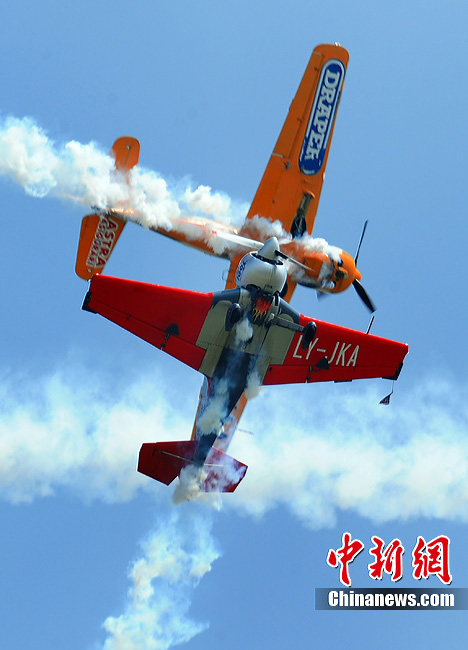 當(dāng)?shù)貢r(shí)間7月17日,來(lái)自世界各地60多架老式飛機(jī)參加了在羅馬尼亞首都布加勒斯特北郊亨利·科安達(dá)國(guó)際機(jī)場(chǎng)舉行的2010飛行表演。