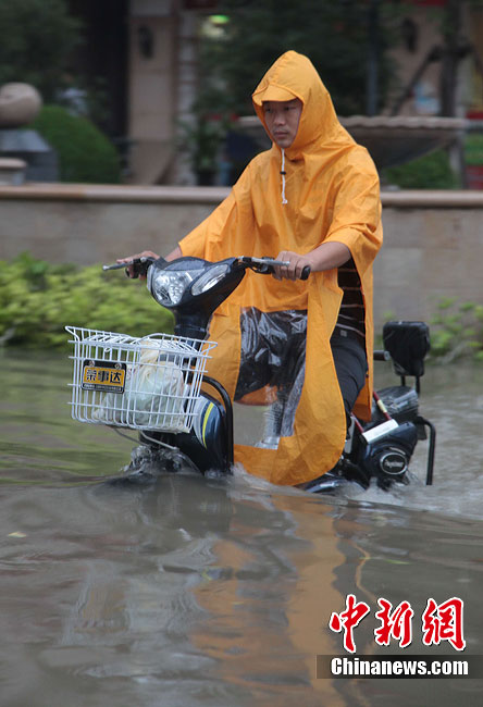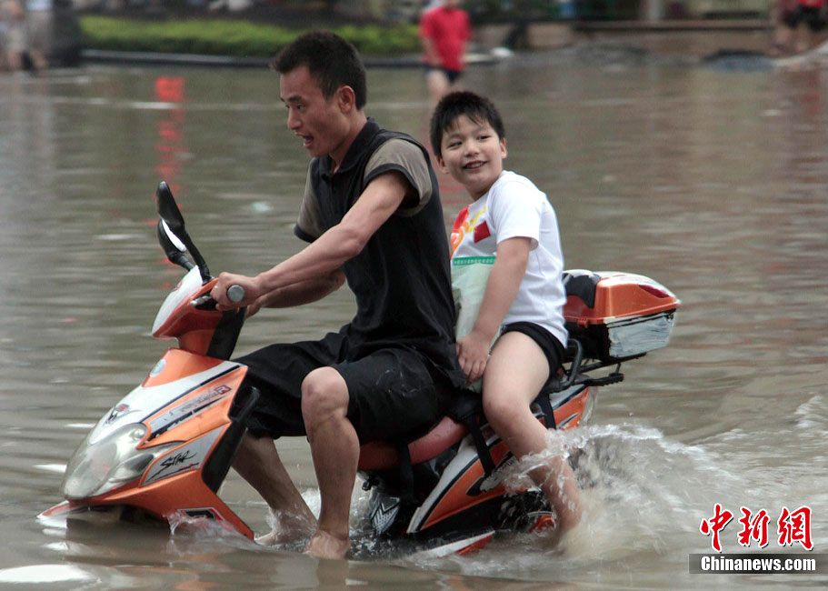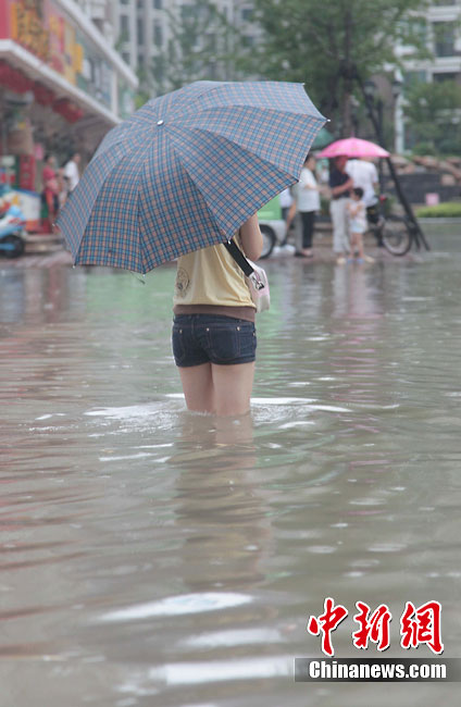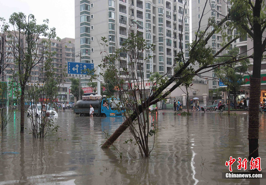 7月18日下午,安徽合肥降大暴雨,風(fēng)力達(dá)7-8級,導(dǎo)致市區(qū)多處內(nèi)澇,市內(nèi)交通嚴(yán)重堵塞。淮河防總17日發(fā)布預(yù)警,淮河干流受持續(xù)降雨影響,將出現(xiàn)一次較大的洪水過程,淮河流域的降雨和上游來水可能使安徽省面臨長江、淮河兩線抗洪作戰(zhàn)的不利局面。中新社發(fā) 張婭子 攝