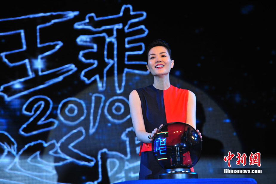 7月19日,王菲演唱會舉行發(fā)布會。淡出歌壇五年的天后王菲身穿紅黑色“八卦裙”現(xiàn)身,盡顯高貴氣質(zhì)。中新網(wǎng)記者 田博川 攝