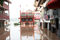 7月19日下午,三峽大壩開(kāi)啟7個(gè)泄洪深孔和2個(gè)排漂孔泄洪。 7月19日至20日上午,三峽水庫(kù)將迎來(lái)峰值接近每秒7萬(wàn)立方米的洪水,是三峽工程建成以來(lái)的最大規(guī)模的洪水。據(jù)了解,19日下午2:00,三峽庫(kù)區(qū)入庫(kù)流量已達(dá)每秒66500立方米,出庫(kù)流量達(dá)每秒38100立方米;到17:00,壩前水位147.74米。 程敏 攝 (圖片來(lái)源:新華網(wǎng))