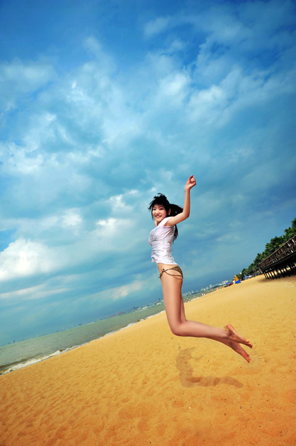 近日,清純美女排球?qū)氊惷贤仙泶┗鹄北然嵩谏碁┥贤嫫鹆伺徘,一件白色襯衣加粉嫩金色的比基尼將孟瞳迪的傲人身材盡情展示。