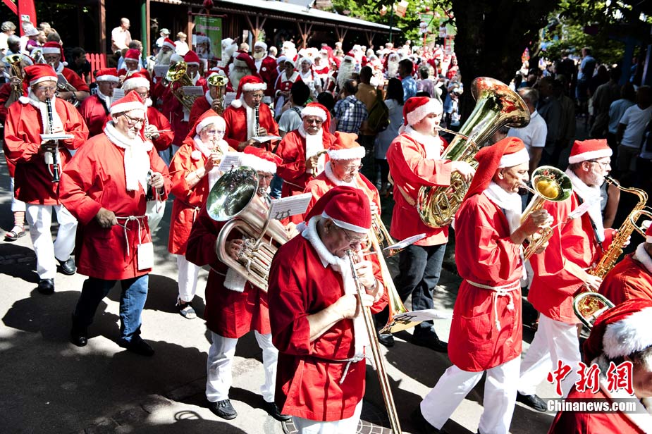 7月19日,丹麥?zhǔn)锥几绫竟,?lái)自世界各地的圣誕老人舉行游行,慶祝一年一度的世界圣誕老人大會(huì)。當(dāng)天,120多名來(lái)自世界各地的圣誕老人齊聚哥本哈根。