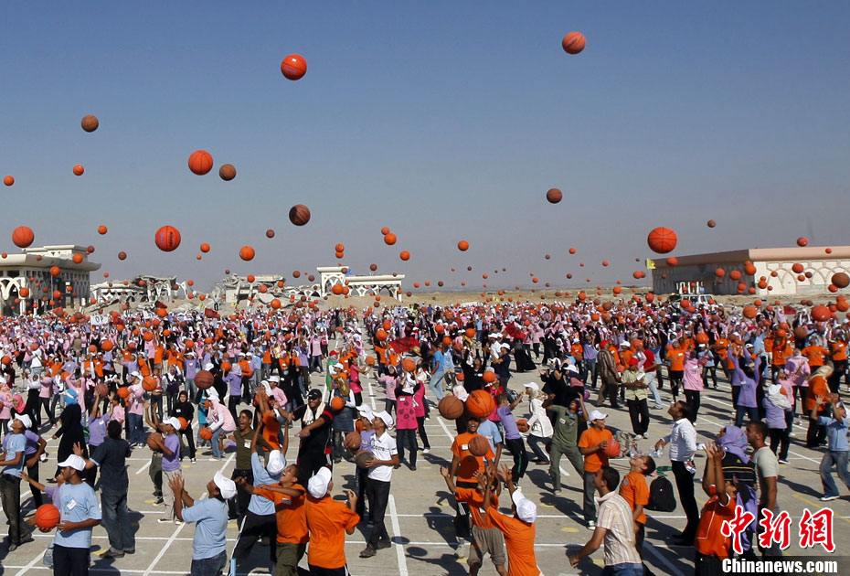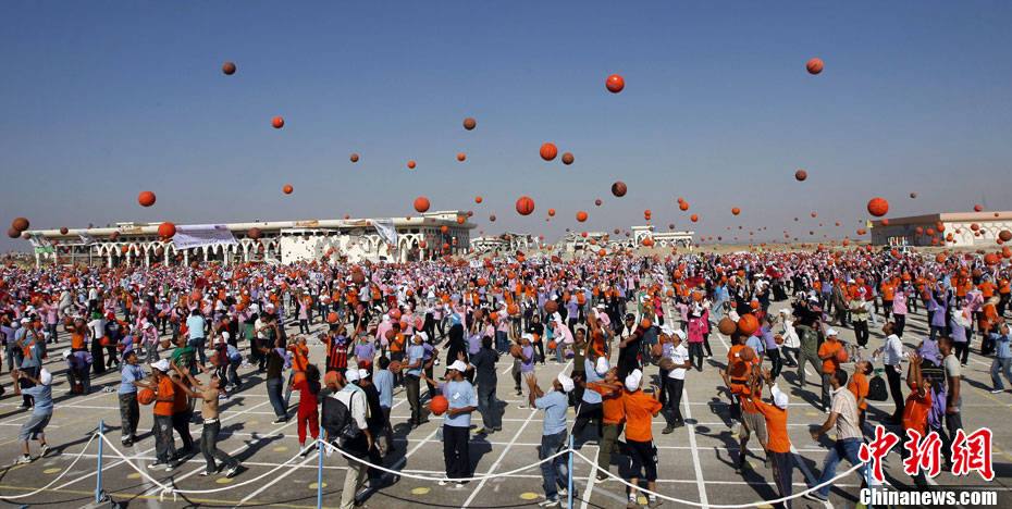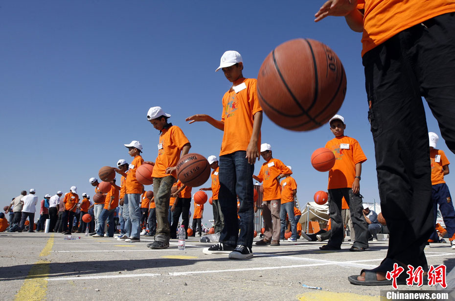 7月22日,加沙地帶7500名巴勒斯坦兒童刷新了最多人在同一地點(diǎn)同時拍籃球的吉尼斯世界紀(jì)錄。當(dāng)日,這些兒童在聯(lián)合國近東巴勒斯坦難民救濟(jì)和工程處駐加沙地帶辦事處的組織下,來到加沙地帶南部一個遭以色列轟炸后廢棄的機(jī)場!伴_始”的口令一發(fā)出,站成方隊(duì)的7500名兒童用單手同時拍起了籃球,連續(xù)進(jìn)行了5分鐘,創(chuàng)造了最多人在同一時間、同一地點(diǎn)拍籃球的吉尼斯世界紀(jì)錄。此前,此項(xiàng)紀(jì)錄由美國以4600多人保持。