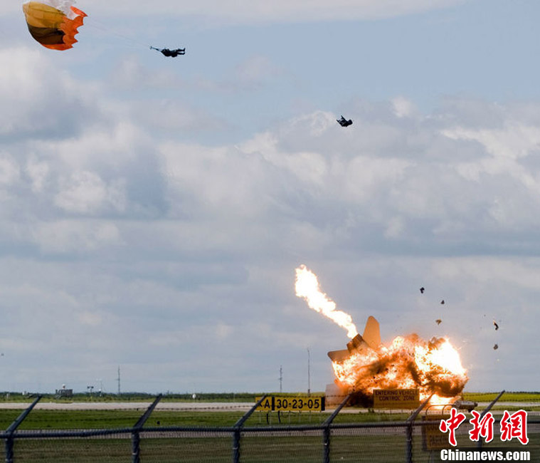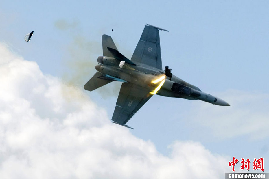 加拿大F-18戰(zhàn)機航展預(yù)演時墜毀 飛行員逃生