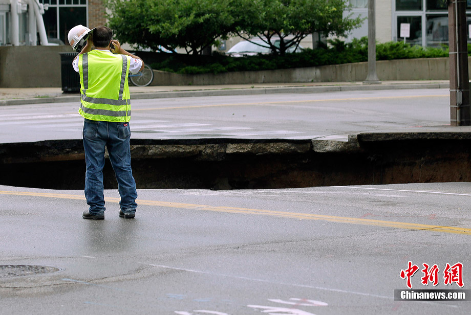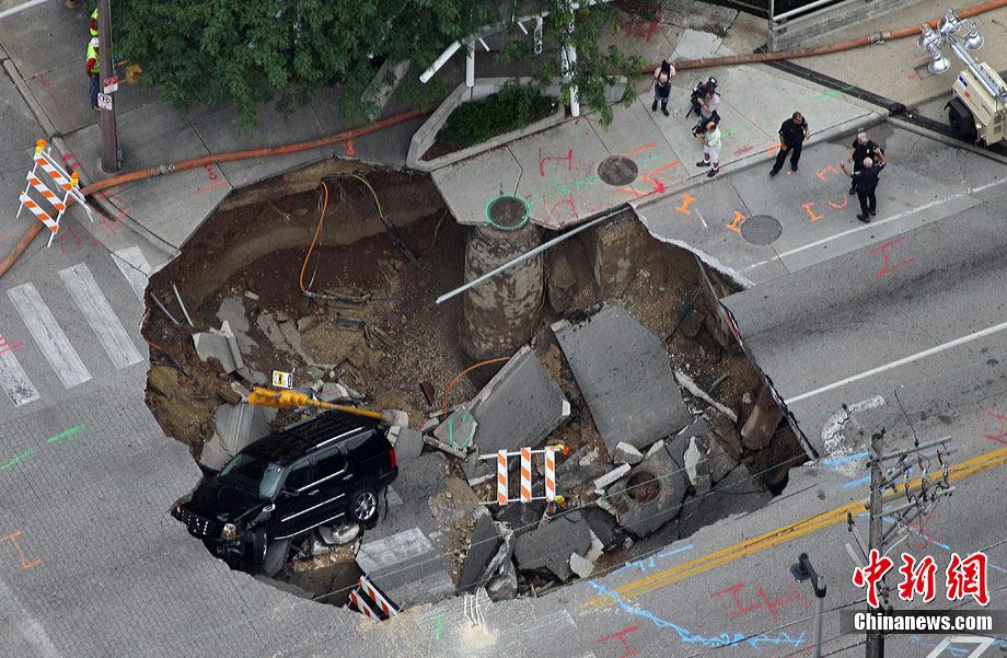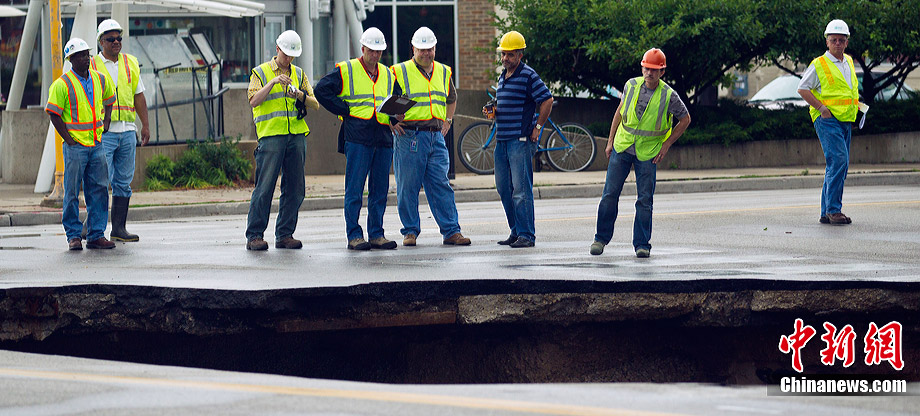 當(dāng)?shù)貢r(shí)間7月23日,美國(guó)南部威斯康星州遭遇強(qiáng)烈暴風(fēng)雨襲擊,造成當(dāng)?shù)亟值赖孛嫠莩霈F(xiàn)大洞,路過的汽車不慎掉入洞中。暴風(fēng)雨還造成當(dāng)?shù)囟嗵幒樗簽E。