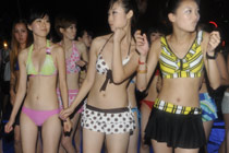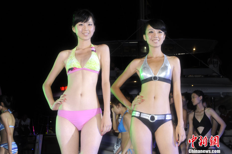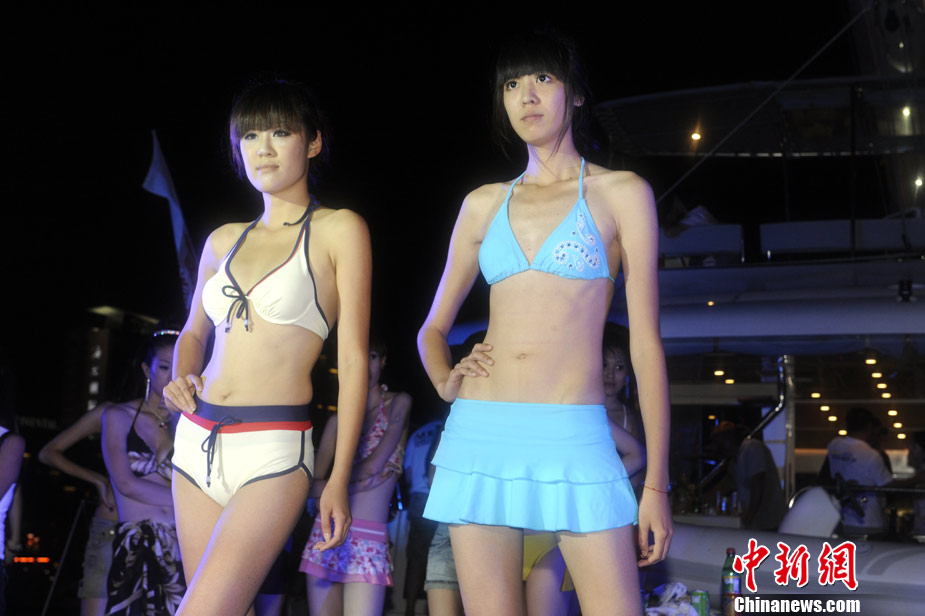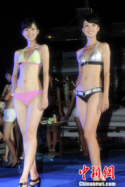 7月25日,2010青島國(guó)際海洋節(jié)盛大開幕。當(dāng)晚,在青島奧帆中心的游艇上舉行了一場(chǎng)活力四射的比基尼派對(duì)。中新網(wǎng)記者 田博川 攝
