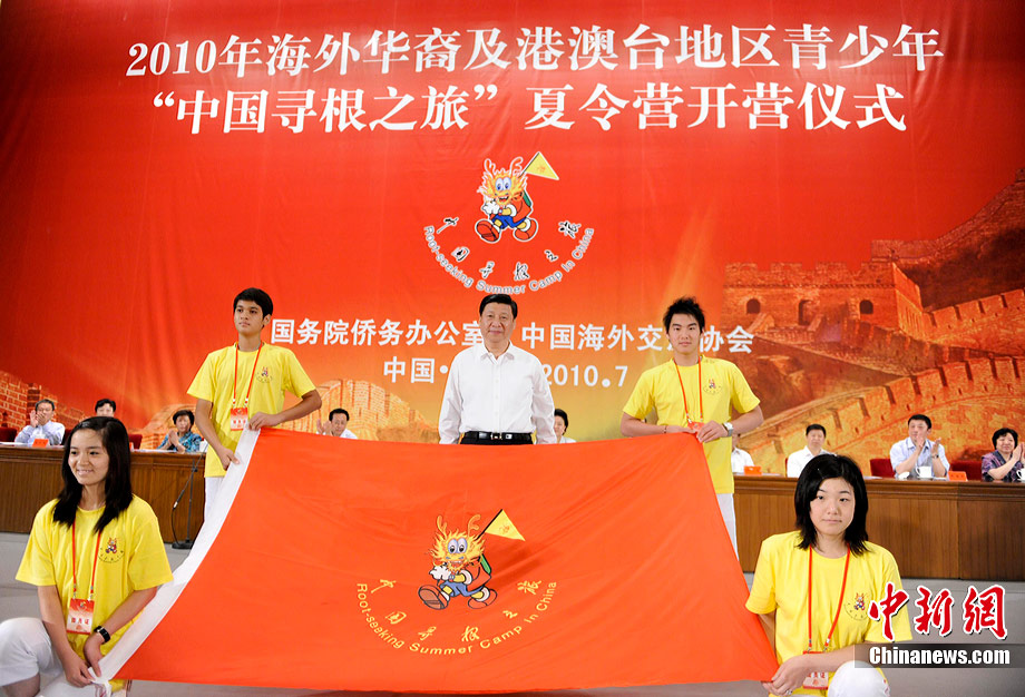 7月25日,海外華裔及港澳臺地區(qū)青少年“中國尋根之旅”夏令營開營儀式在北京人民大會堂舉行,中共中央政治局常委、國家副主席習(xí)近平向參加夏令營的青少年授旗。此次夏令營為歷屆規(guī)格最高、規(guī)模最大的一次,共有來自世界51個(gè)國家和港澳臺地區(qū)的6000余名華裔青少年參加。該夏令營由國務(wù)院僑務(wù)辦公室和中國海外交流協(xié)會舉辦。中新社發(fā) 廖攀 攝