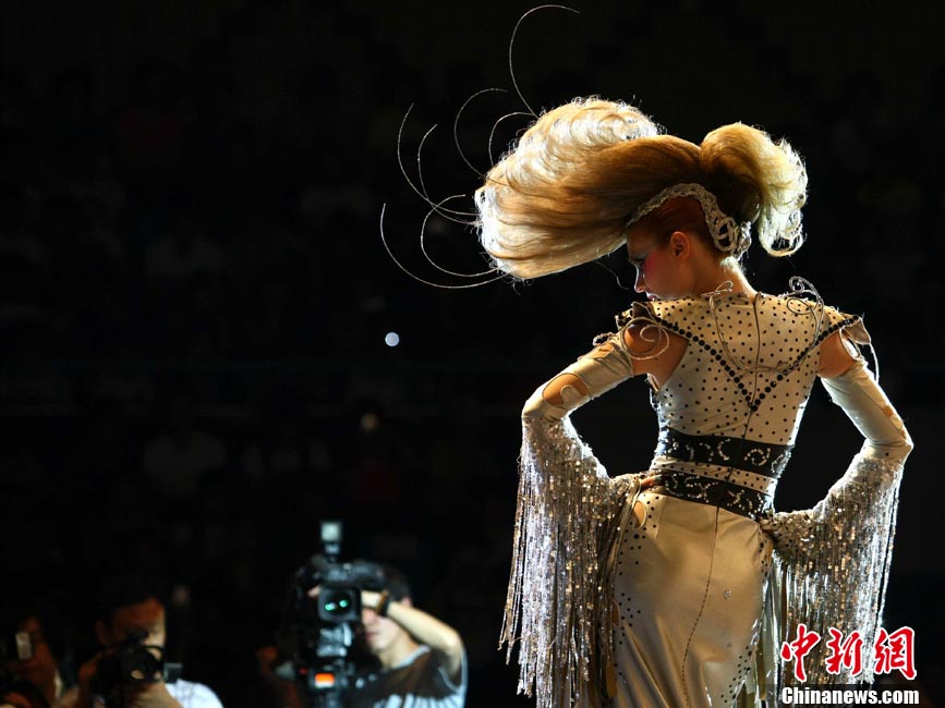 7月28日,為期兩天的“2010中國(guó)發(fā)型師藝術(shù)節(jié)”在北京落幕,此次主題為“思想碰撞,演繹潮流”。在當(dāng)日下午進(jìn)行的“2010年中國(guó)國(guó)際發(fā)型趨勢(shì)發(fā)布會(huì)”上,包括中國(guó)審美在內(nèi)的三家國(guó)內(nèi)外知名美發(fā)團(tuán)隊(duì)登場(chǎng)獻(xiàn)技,以古典、時(shí)尚、中式、歐美的發(fā)型風(fēng)格,剖析著中國(guó)未來(lái)發(fā)型的流行走向。中新社記者 富田 攝