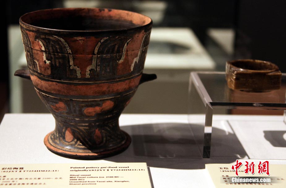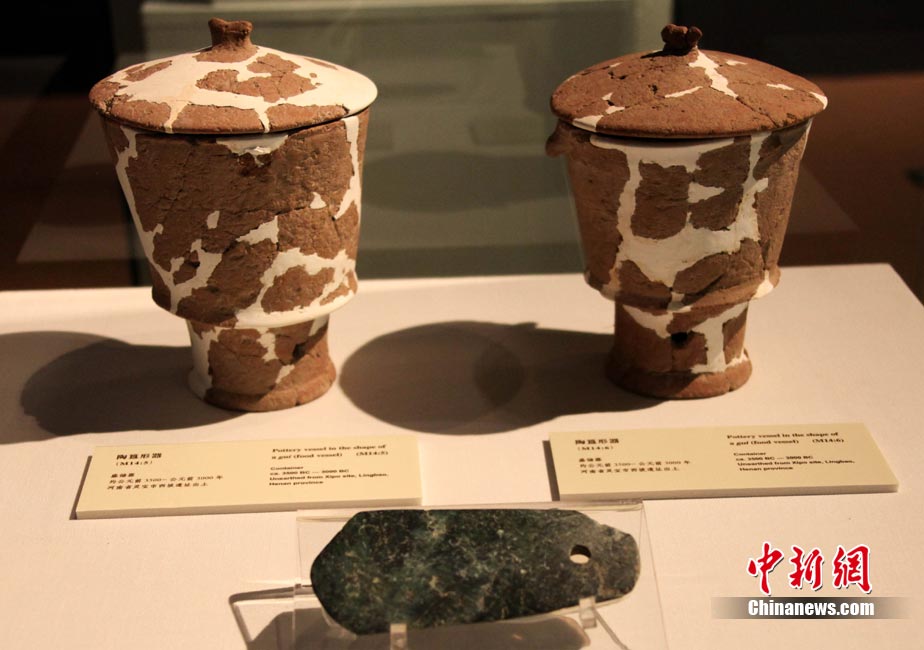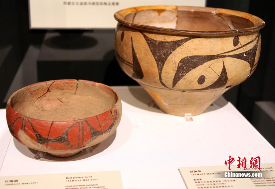 7月29日,中國(guó)社會(huì)科學(xué)院考古研究所與首都博物館共同主辦的“考古中華”展開展,展出的400多件珍貴出土文物中有7成以上為首次公開亮相。今年是中國(guó)社科院考古所成立60周年,作為該所甲子誕辰系列慶典活動(dòng)之一,“考古中華”將展出60年來(lái)新中國(guó)前后四代數(shù)百位考古學(xué)家所獲各種重要考古成果,堪稱中國(guó)迄今舉辦規(guī)模最大的考古學(xué)專題展覽。圖為考古發(fā)掘出土的精美陶器。中新社記者 孫自法 攝