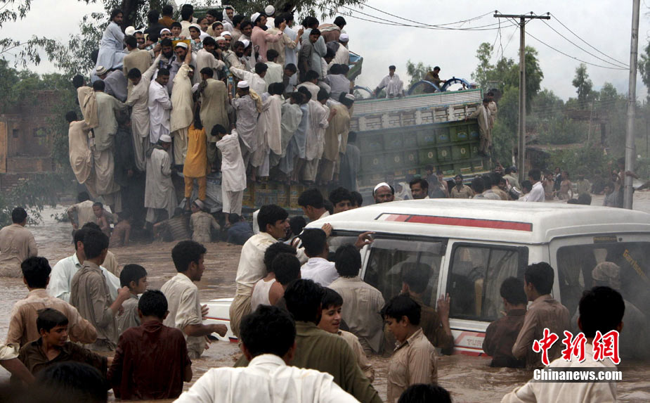 巴基斯坦官員29日表示,由于季風(fēng)持續(xù)導(dǎo)致暴雨,巴基斯坦多處遭洪水淹沒,河壩絕提,上周到現(xiàn)在已經(jīng)造成100多人喪生。信息部官員稱,這是巴基斯坦自1929年以來最為嚴(yán)重的洪災(zāi),此次洪水可能導(dǎo)致最多40萬人被圍困。