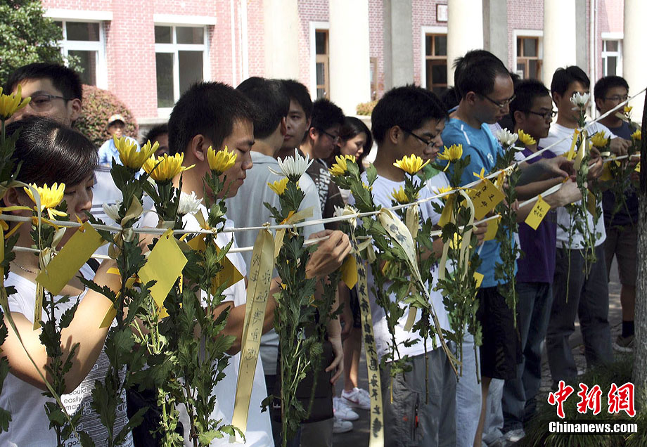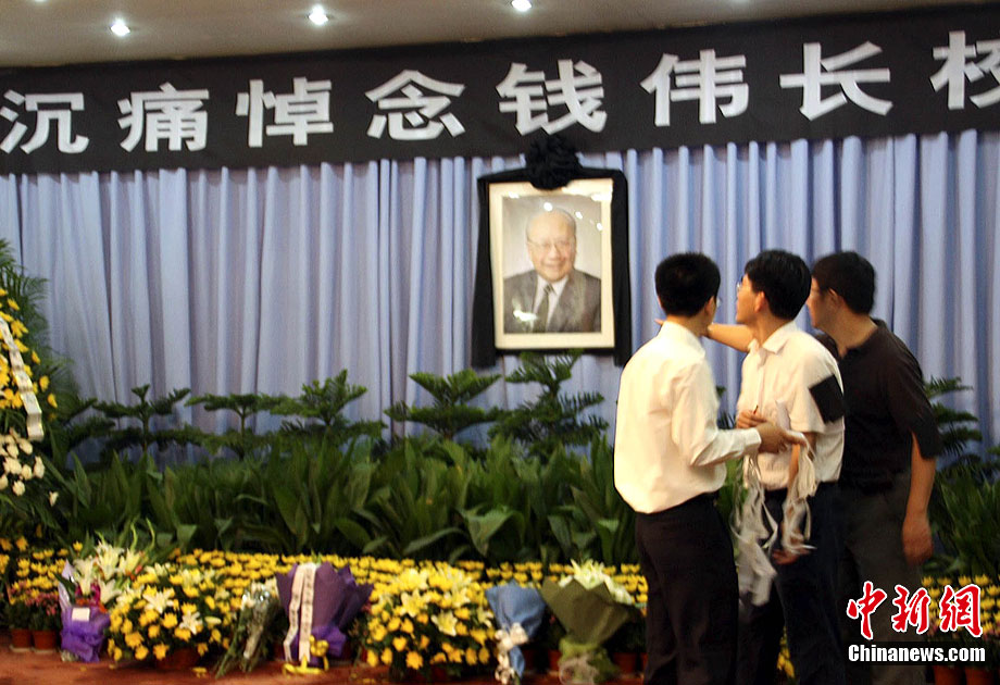 7月31日,上海大學(xué)校園內(nèi)布置起靈堂,供前來悼念一代科學(xué)名家的各方民眾和上海大學(xué)師生在此吊唁。中新社發(fā) 張嘉森 攝