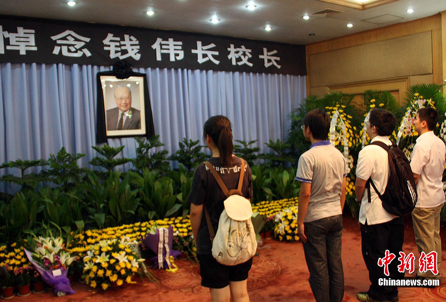 上海大學(xué)校園內(nèi)布置靈堂悼念錢偉長