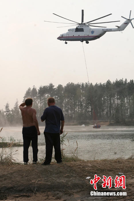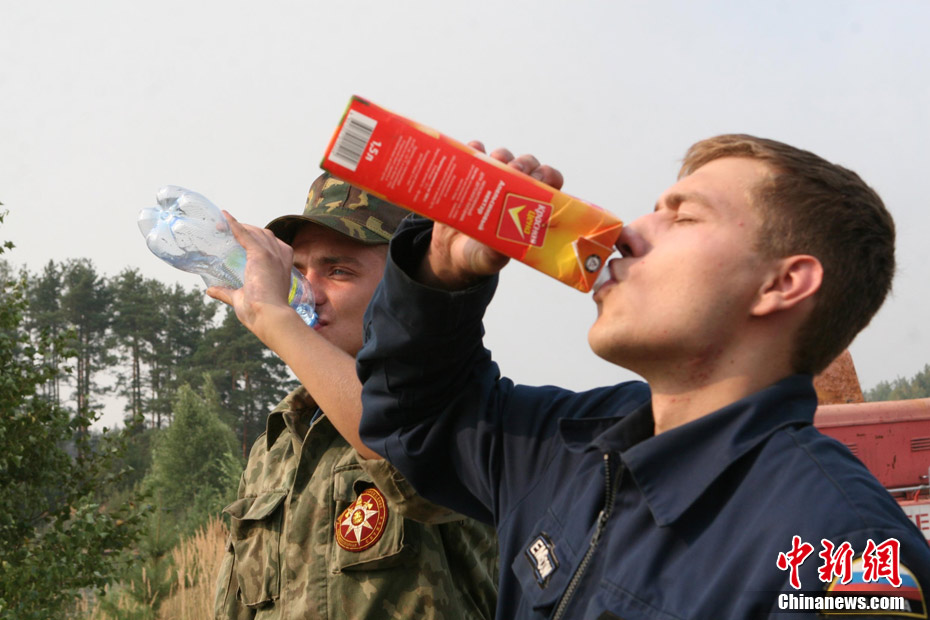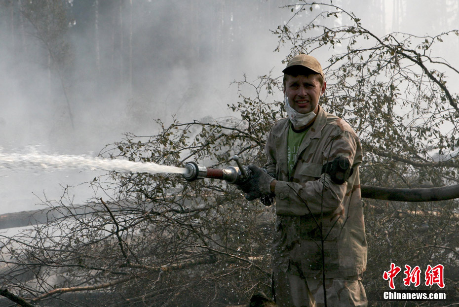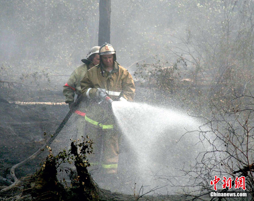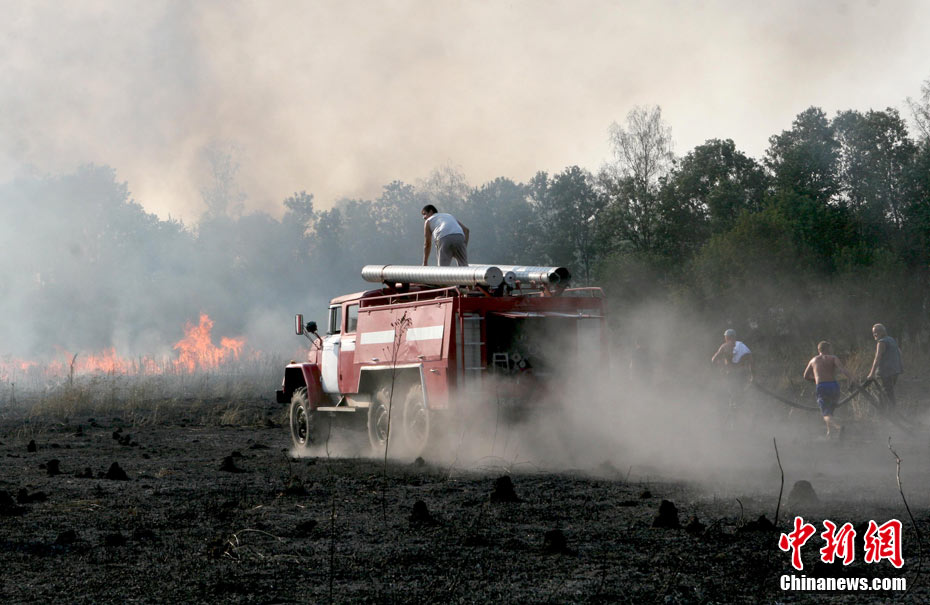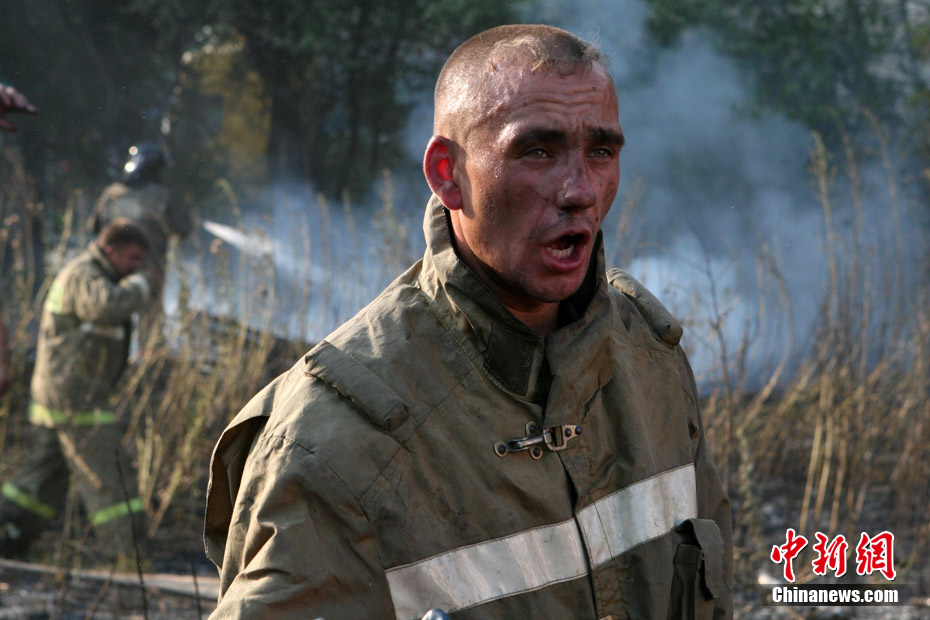 8月5日,在距離莫斯科市區(qū)僅15公里處的一家加油站附近突然燃起森林大火,情勢非常危急。當(dāng)?shù)孛癖娮园l(fā)與消防人員全力滅火。中新社發(fā) 田冰 攝