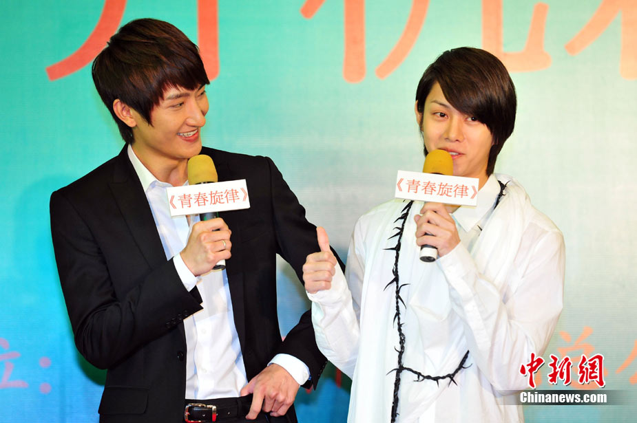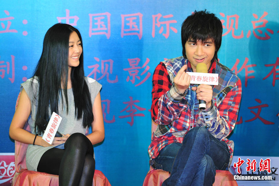 8月9日,央視8集青春勵志劇《青春旋律》舉行開機新聞發(fā)布會。主演古巨基、詩雅、楊洋、蔣夢婕、金希澈、周覓到場。古巨基在劇中“高齡”出演大學(xué)生——男主角汪雨航。發(fā)布會上,古仔一身大學(xué)生裝扮顯得青春活力十足。片中,新版《紅樓夢》中的寶黛:楊洋、蔣夢婕將再次攜手出演。韓國人氣藝人、Super Junior成員金希澈的加盟也為該片大增熱度。圖為寶黛將再度攜手。中新社發(fā) 李學(xué)仕 攝