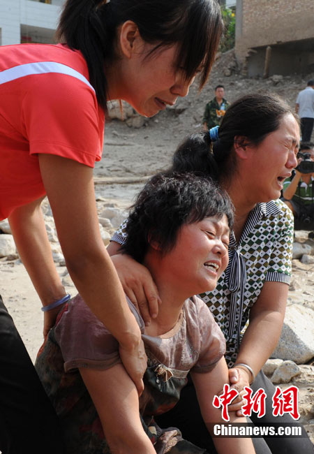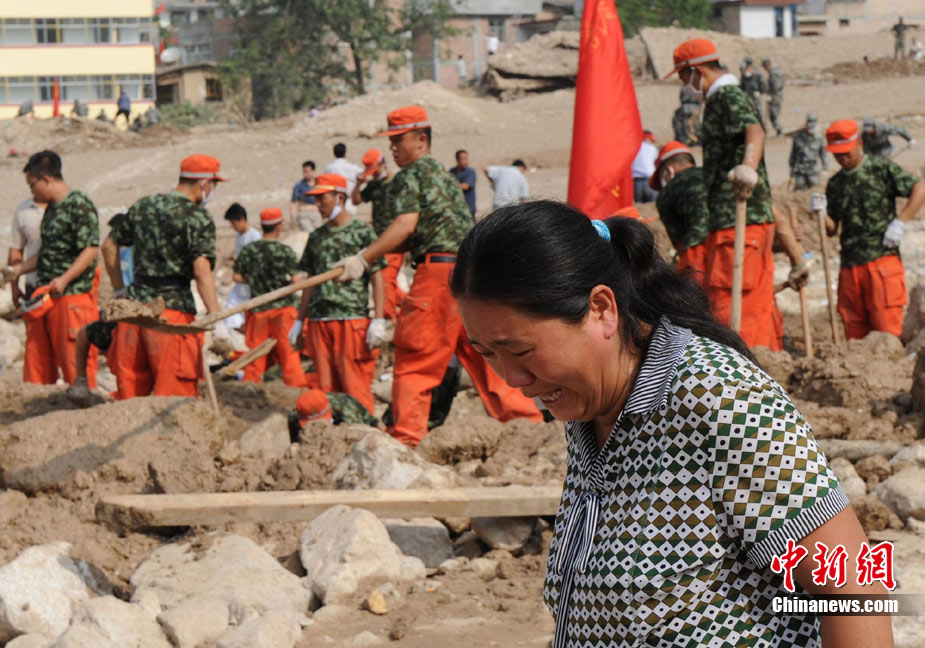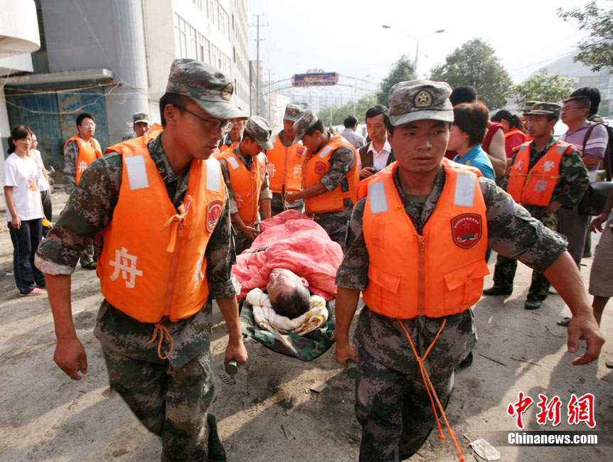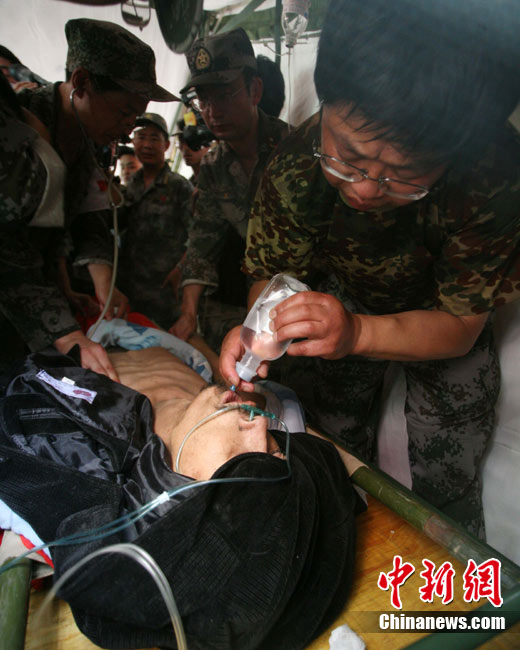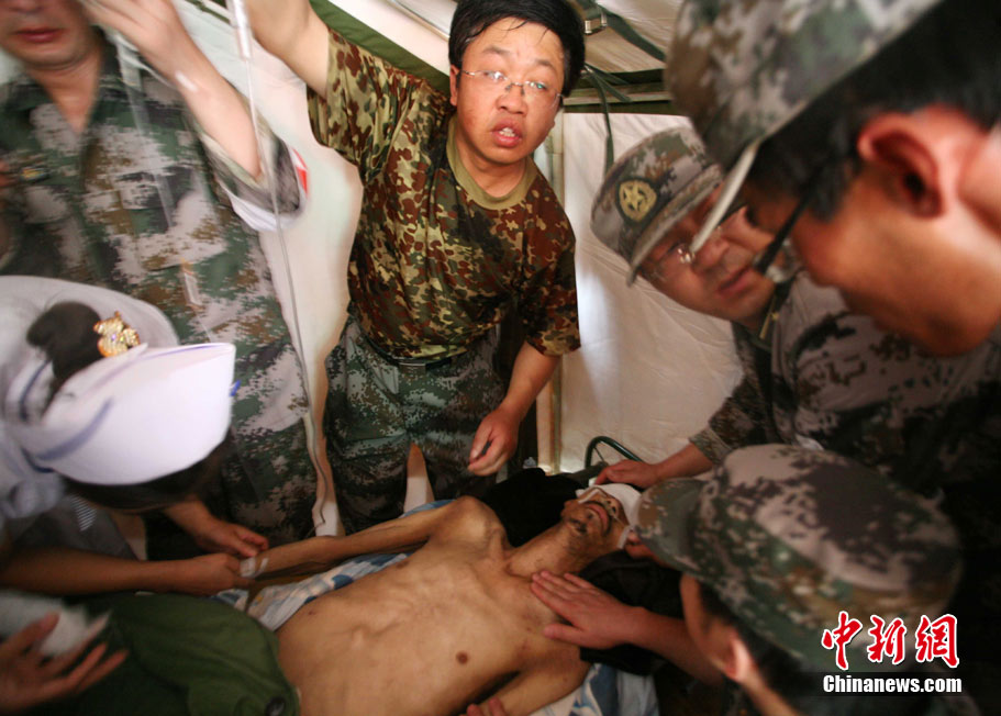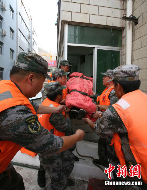 8月10日10時(shí)許,甘肅舟曲縣泥石流救援現(xiàn)場(chǎng)的移動(dòng)大樓附近發(fā)現(xiàn)一名幸存者,經(jīng)過(guò)四川廣元軍分區(qū)救援人員1小時(shí)30分的緊張營(yíng)救,男子被成功救出。據(jù)悉,獲救者叫劉馬勝代,已被埋了近60個(gè)小時(shí),今年52歲,是一名殘疾人。目前,有關(guān)方面正在緊急調(diào)集直升機(jī)將其轉(zhuǎn)移至蘭州救治。中新社發(fā) 劉忠俊 攝