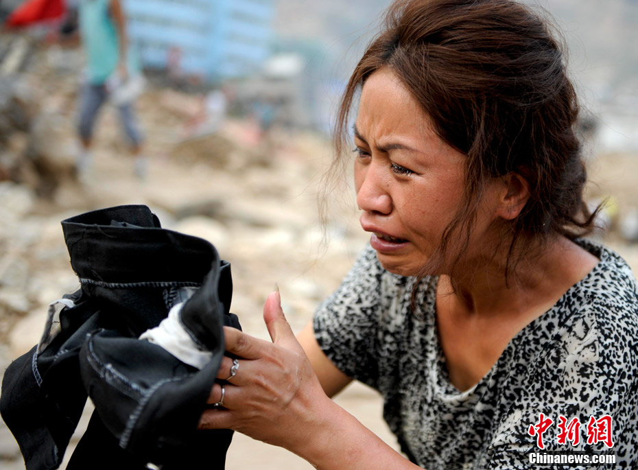 2010年8月11日,甘肅舟曲縣發(fā)生特大泥石流災(zāi)害后的第四天,目前救援工作仍在繼續(xù)。截至10日17時,泥石流災(zāi)害死亡人數(shù)已達(dá)702人,失蹤人員1042人,42人重傷。中新網(wǎng)記者 金碩 攝