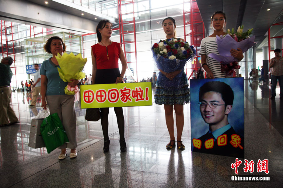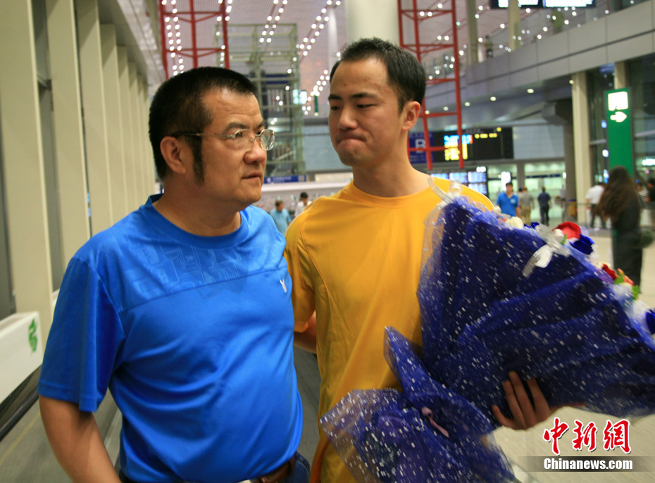 8月10日晚間,被控以“恐怖威脅”罪而被逮捕的中國留美博士生翟田田,自紐約肯尼迪國際機(jī)場抵達(dá)北京首都國際機(jī)場。在異國他鄉(xiāng)經(jīng)歷約4個月的牢獄之災(zāi)后,翟田田終于憑藉“自動離境”權(quán)利離美歸國。今年4月份,在美國新澤西州攻讀博士學(xué)位的翟田田因與校方發(fā)生矛盾,以“恐怖威脅”罪名被逮捕,并遭校方退學(xué)并被美國移民局關(guān)入移民監(jiān)獄。圖為翟田田與8年未曾謀面的父親相擁而泣。中新網(wǎng)記者 張冬冬 攝