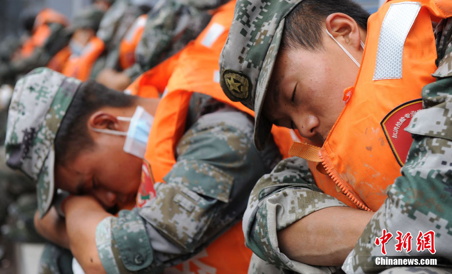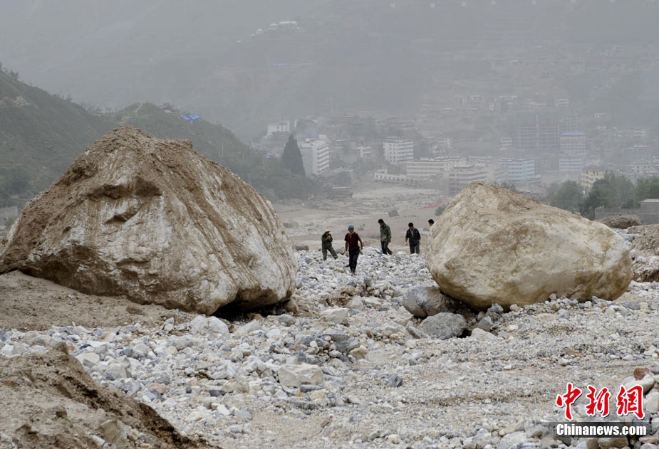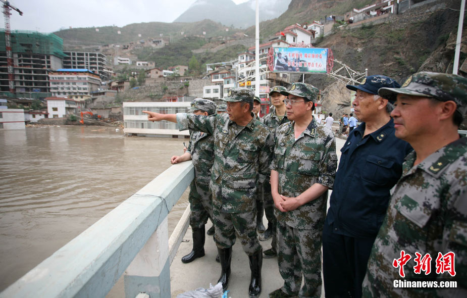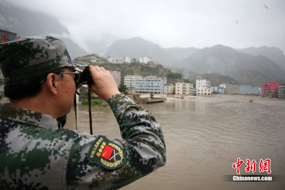 8月13日14:50分,蘭州軍區(qū)某集團軍“開山斧”工兵團已對白龍江舟曲段實施了5次爆破,疏通因泥石流等淤泥淤積堵塞的白龍江河道,在排除洪澇險情的同時,應對今日20時前過境的新一輪洪峰。圖為觀察江面變化情況。中新社發(fā) 劉忠俊 攝